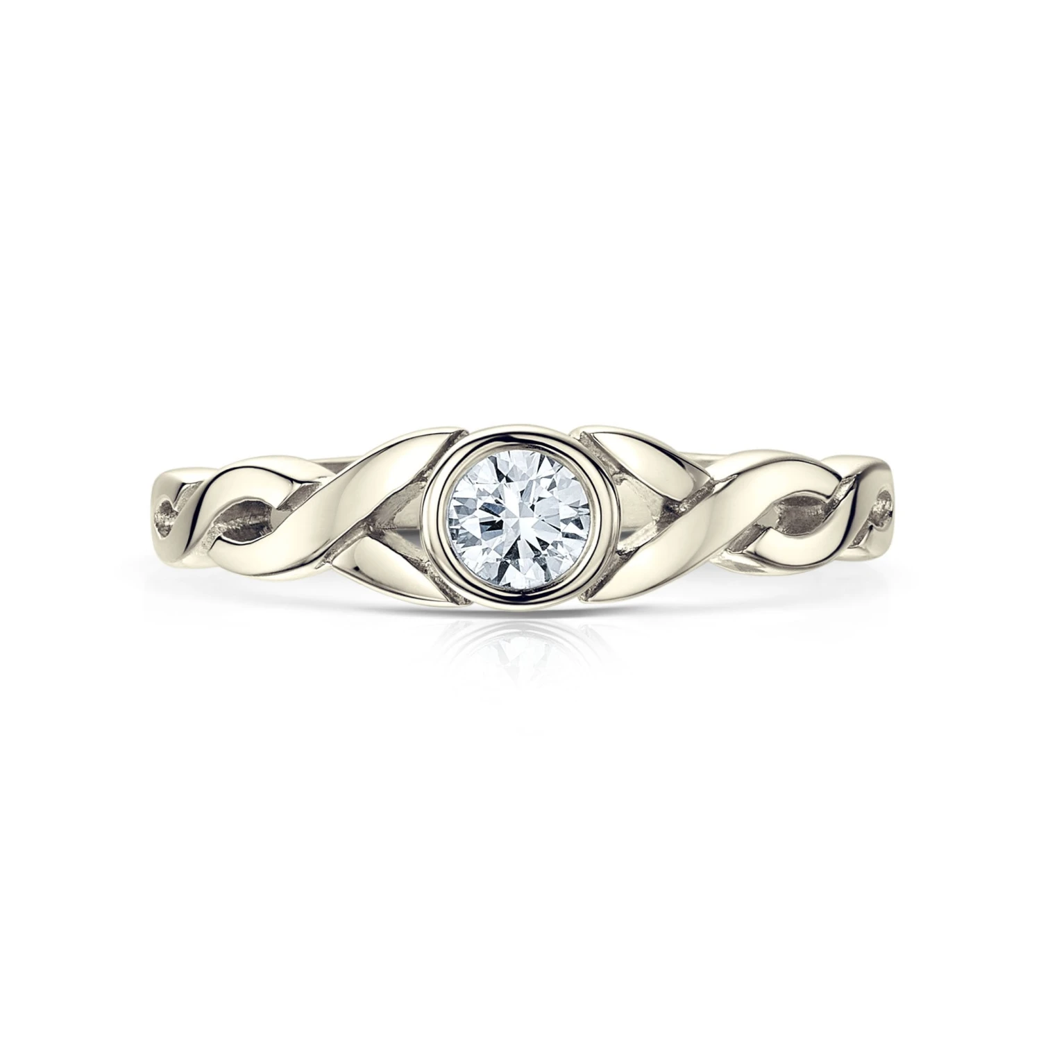This Celtic Twist ring in elegant 9ct white gold has an elegant interwoven design, enhanced with a 3.9mm brilliant-cut diamond, set by hand in our Orkney workshop.