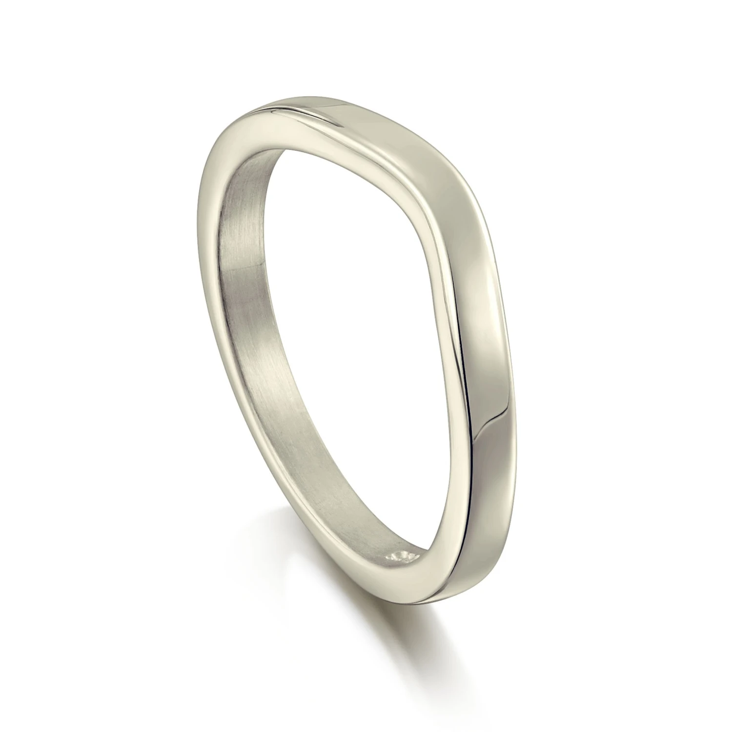A wedding band with subtle curve in elegant 9ct white gold, to match Sheila’s Contemporary 0.40ct Solitaire Diamond Ring.