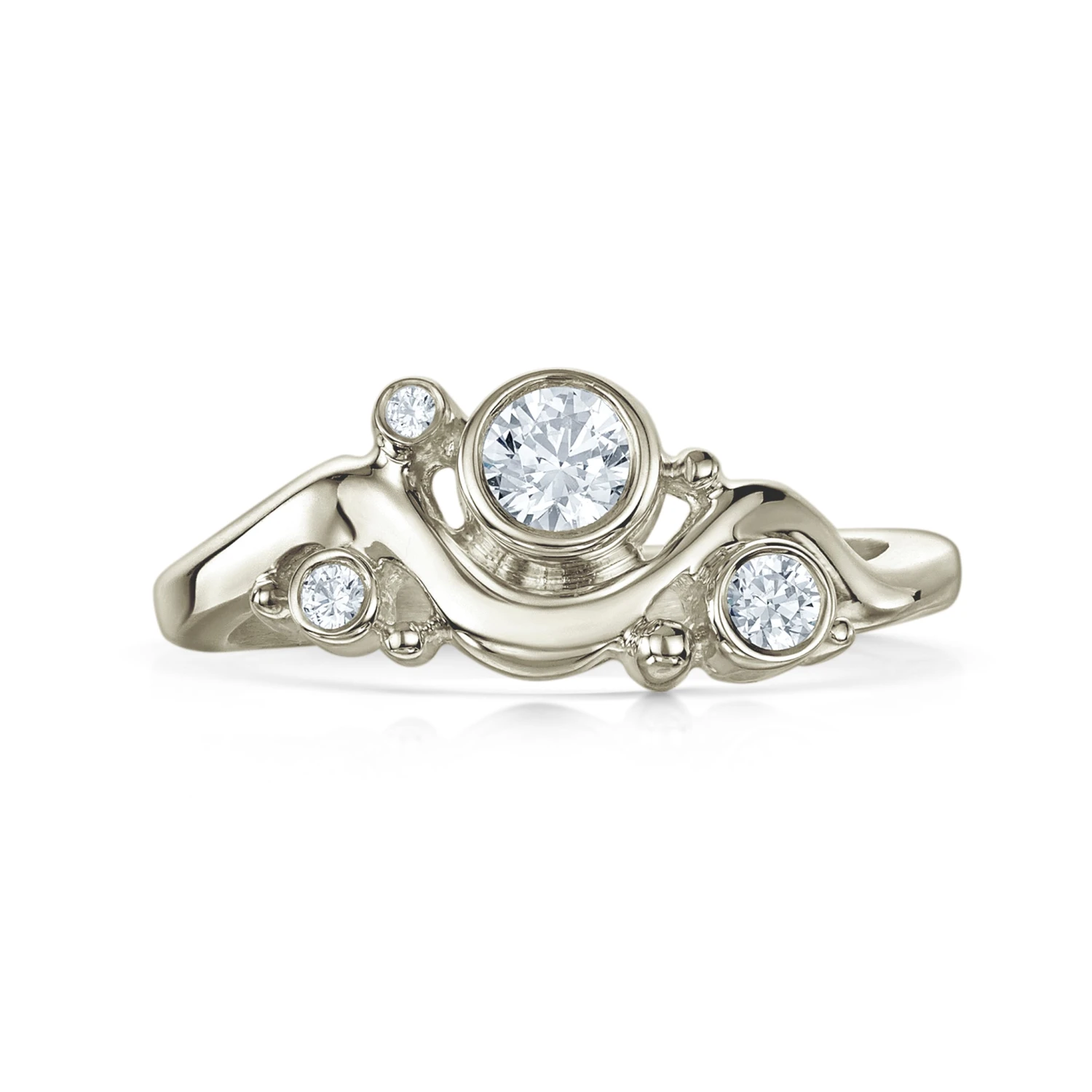 This beautiful Cosmos Constellation ring in luxurious and elegant 18ct white gold features four diamonds of various sizes—totalling 0.50ct—hand-set in our Orkney workshop.