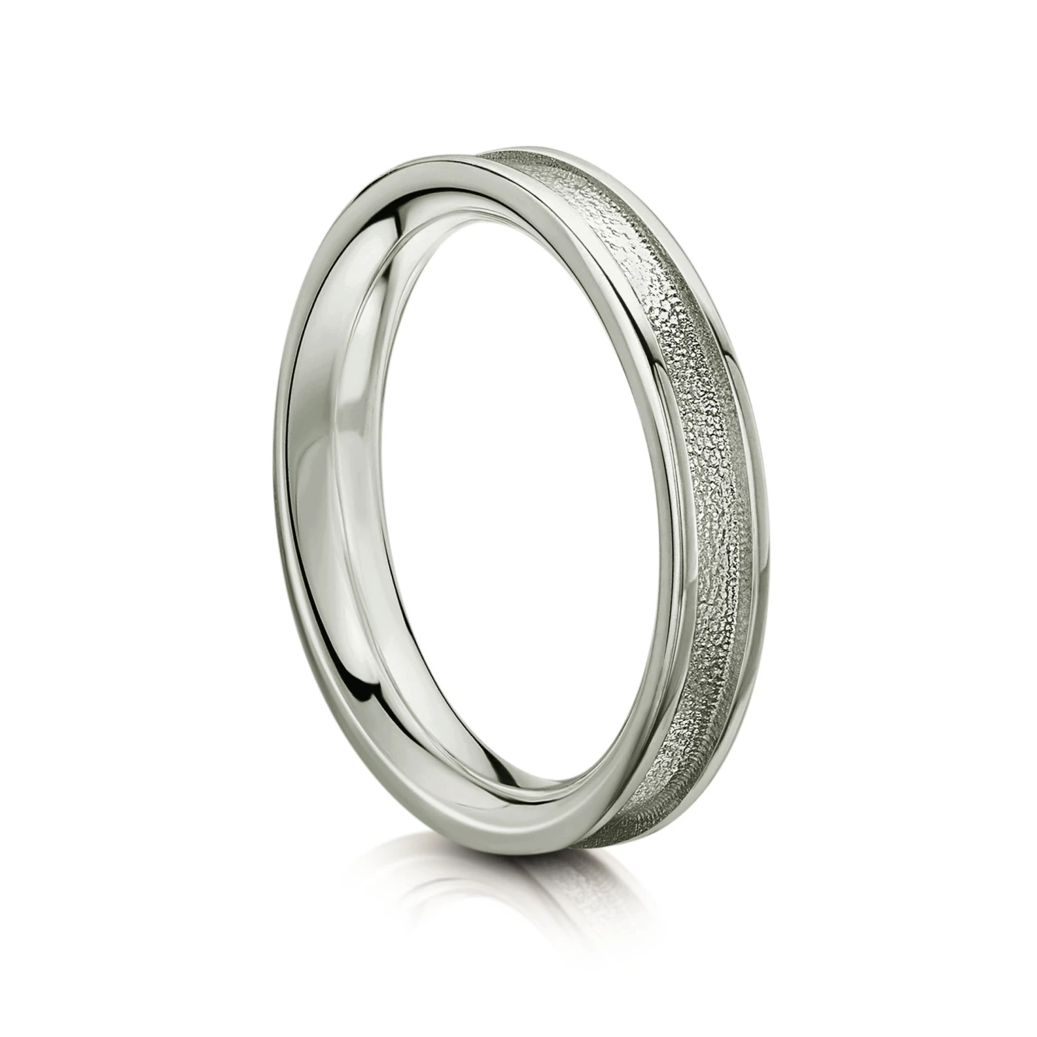 This Halo comfort fit ring in platinum measures approximately 3.5mm wide and is-hand finished in our Orkney workshop. The ring is perfect for stacking with other Halo rings or with many other rings from Sheila’s collections including Matrix and Ogham.