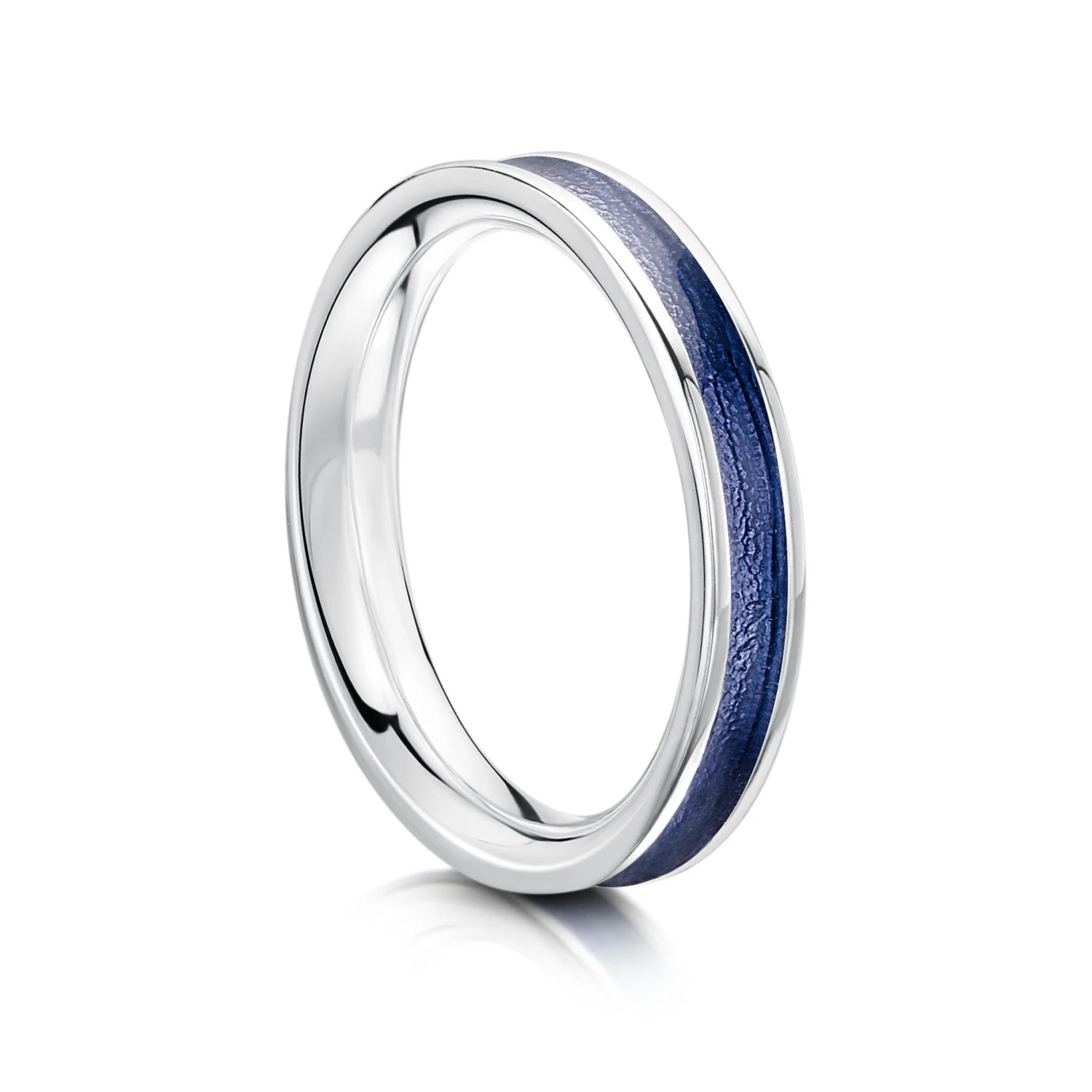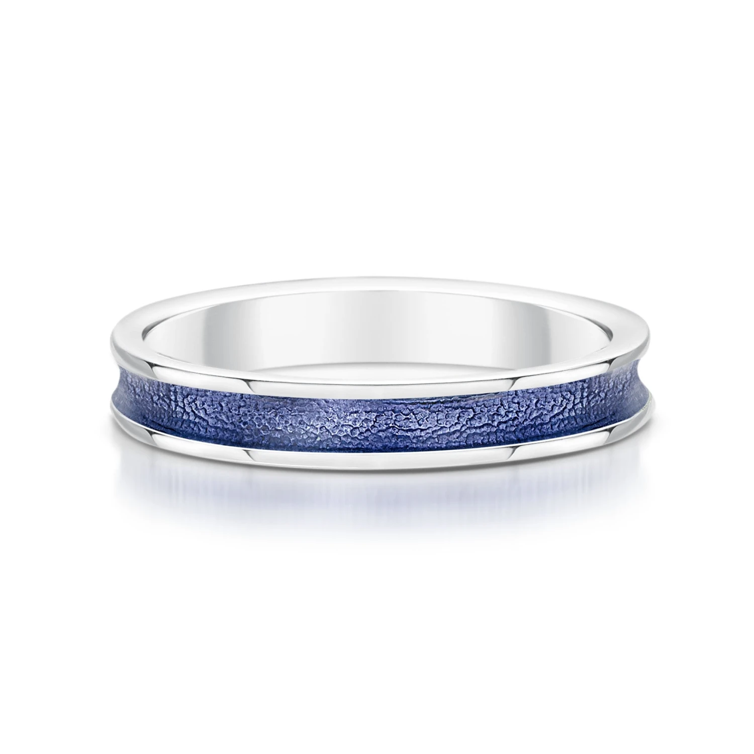 This sterling silver Halo ring features a comfort fit band, hand-enamelled in our Orkney workshop in Purple enamel. The ring is approximately 3.5mm wide and is perfect for stacking with other Halo rings or with many other rings from Sheila’s collections including Matrix and Ogham.