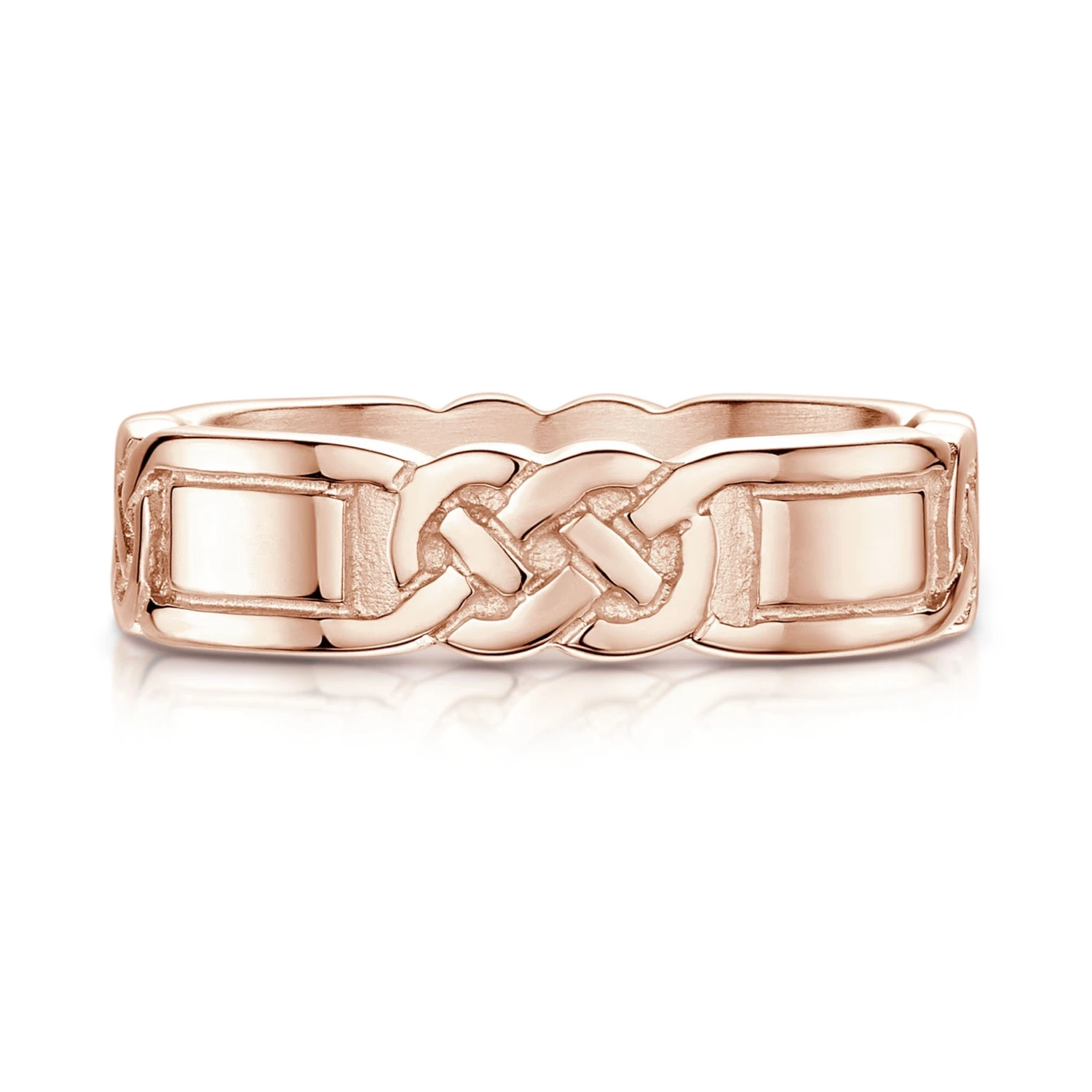This Lover’s Knot Dress Ring in 9ct rose gold features multiple double knot designs spaced evenly around the ring