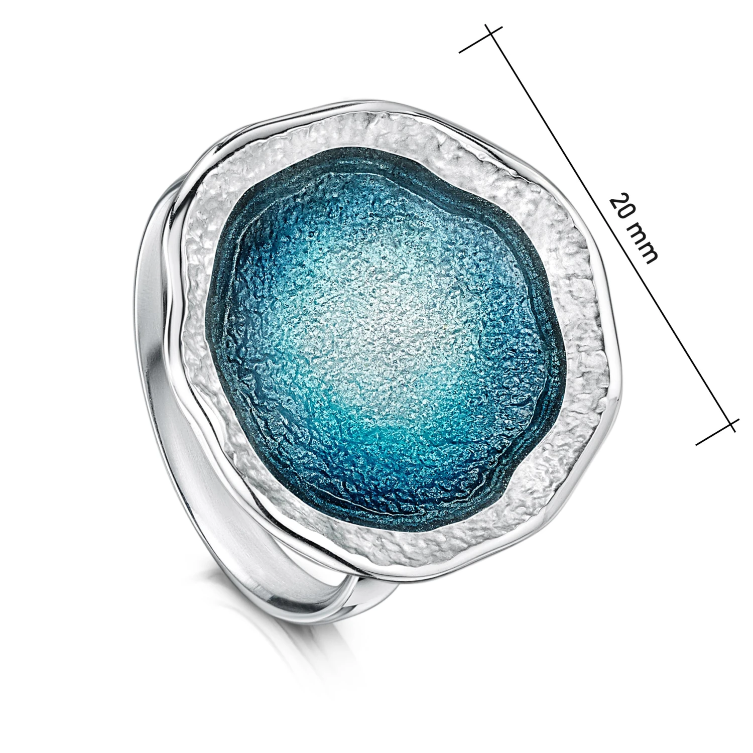This sterling silver Lunar ring features a single cup-shaped design in a textured silver finish. The ring is hand-enamelled in Sheila’s ‘Lichen’ enamel colourway in our Orkney workshop. The cup-like design measures approximately 20mm in diameter and sits on a 3mm band.
