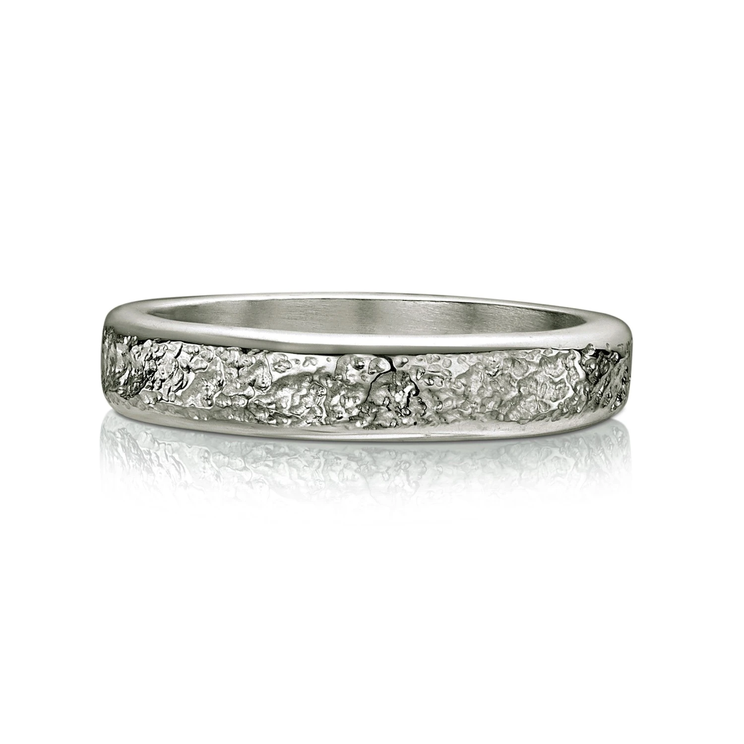 This Matrix ring in platinum features a textured 4mm* band, hand-finished in our Orkney workshop.