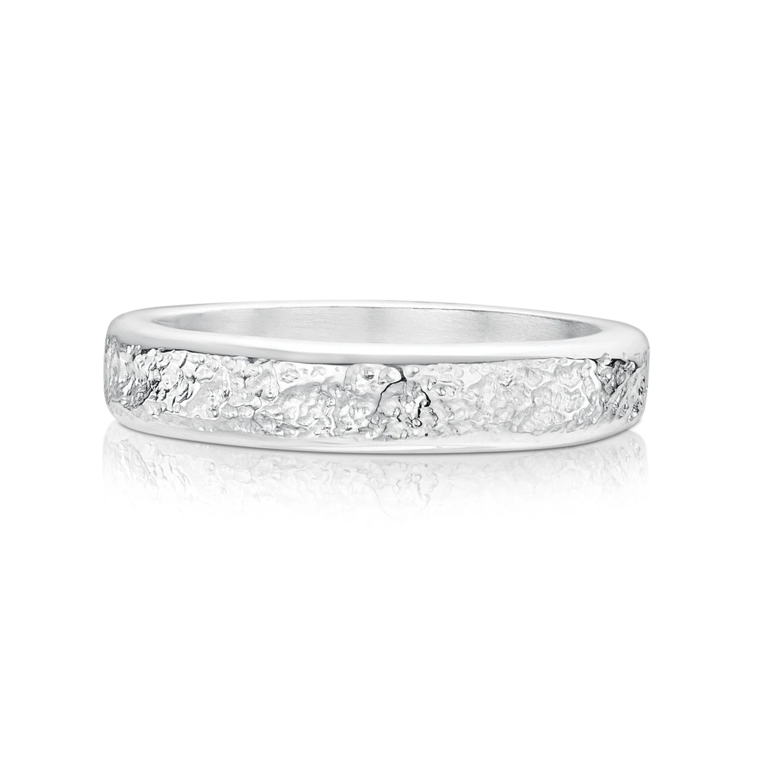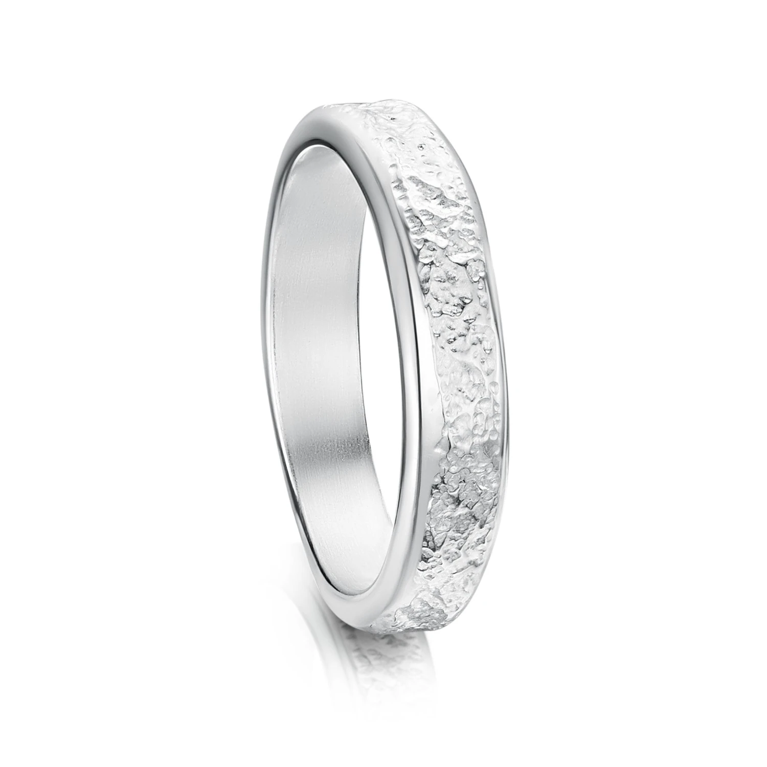 This Matrix ring in sterling silver features a textured 4mm* band, hand-finished in our Orkney workshop.