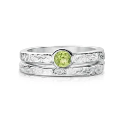 This ring set combines Sheila’s stone-set Matrix ring with her matching Matrix textured band, both beautifully hand-finished in our Orkney workshop. The stone-set Matrix ring features a 4mm peridot and is perfectly matched with the plain Matrix band, both in sterling silver.