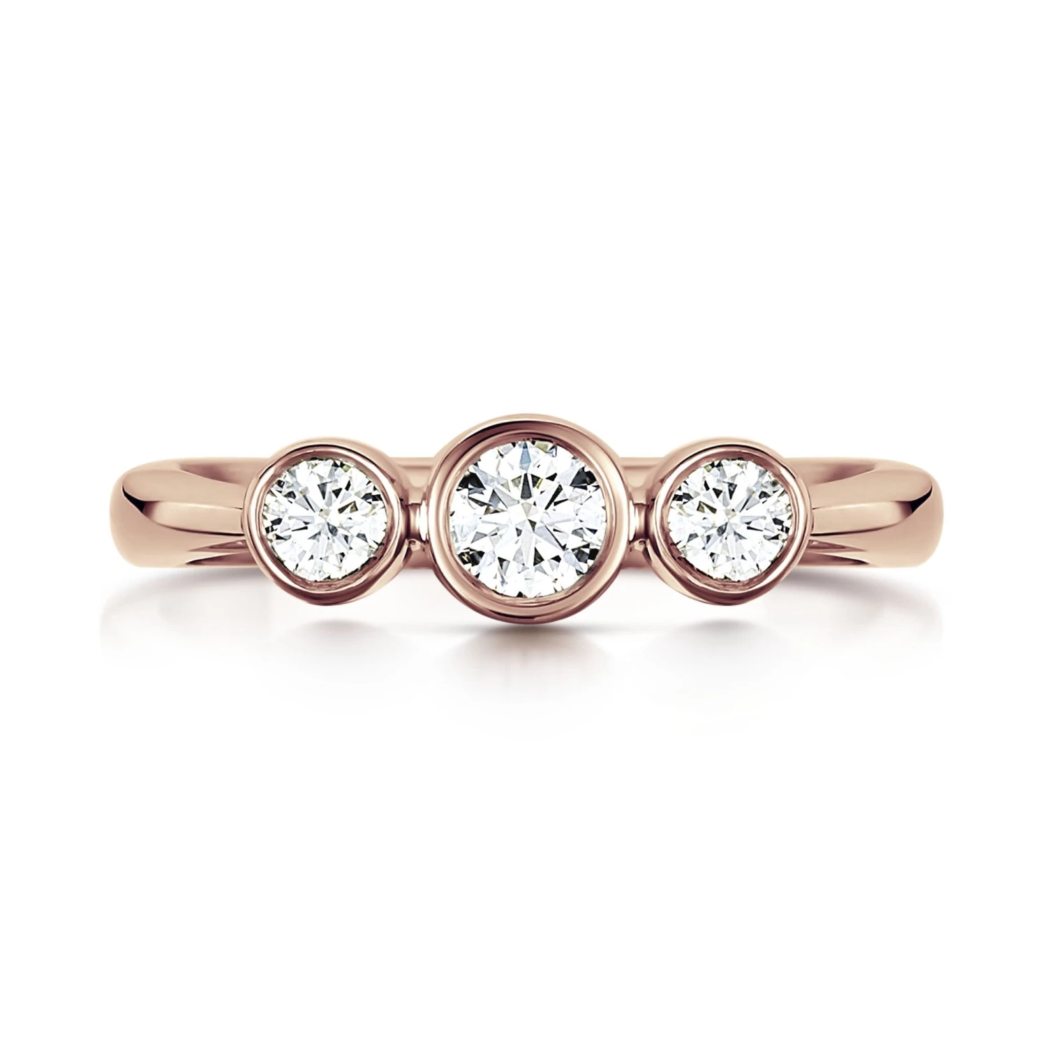 This beautiful 0.51ct Trilogy Diamond Dress Ring in warm 9ct rose gold features a sparkling 4.1mm diamond flanked by two 3.2mm diamonds. A stunning contemporary design suitable for any occasion or for that very special question.