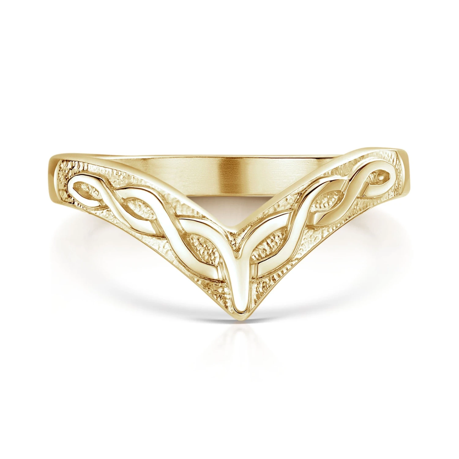 This Wishbone Ring in classic 9ct yellow gold features a Celtic design across the 3mm* band, with the shape representing luck.